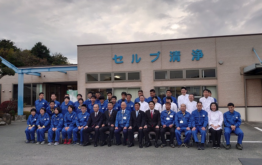 セルプ清浄の森義博係長からの案内で、施設で栽培している小松菜や春菊などの水耕栽培を行っているハウス内を見学した後、森浩二施設長からシイタケの原木栽培について説明を受けました。自動車部品の加工を行う工場では、森施設長の案内で、施設の利用者が作業している現場を視察し、利用者と交流しました。